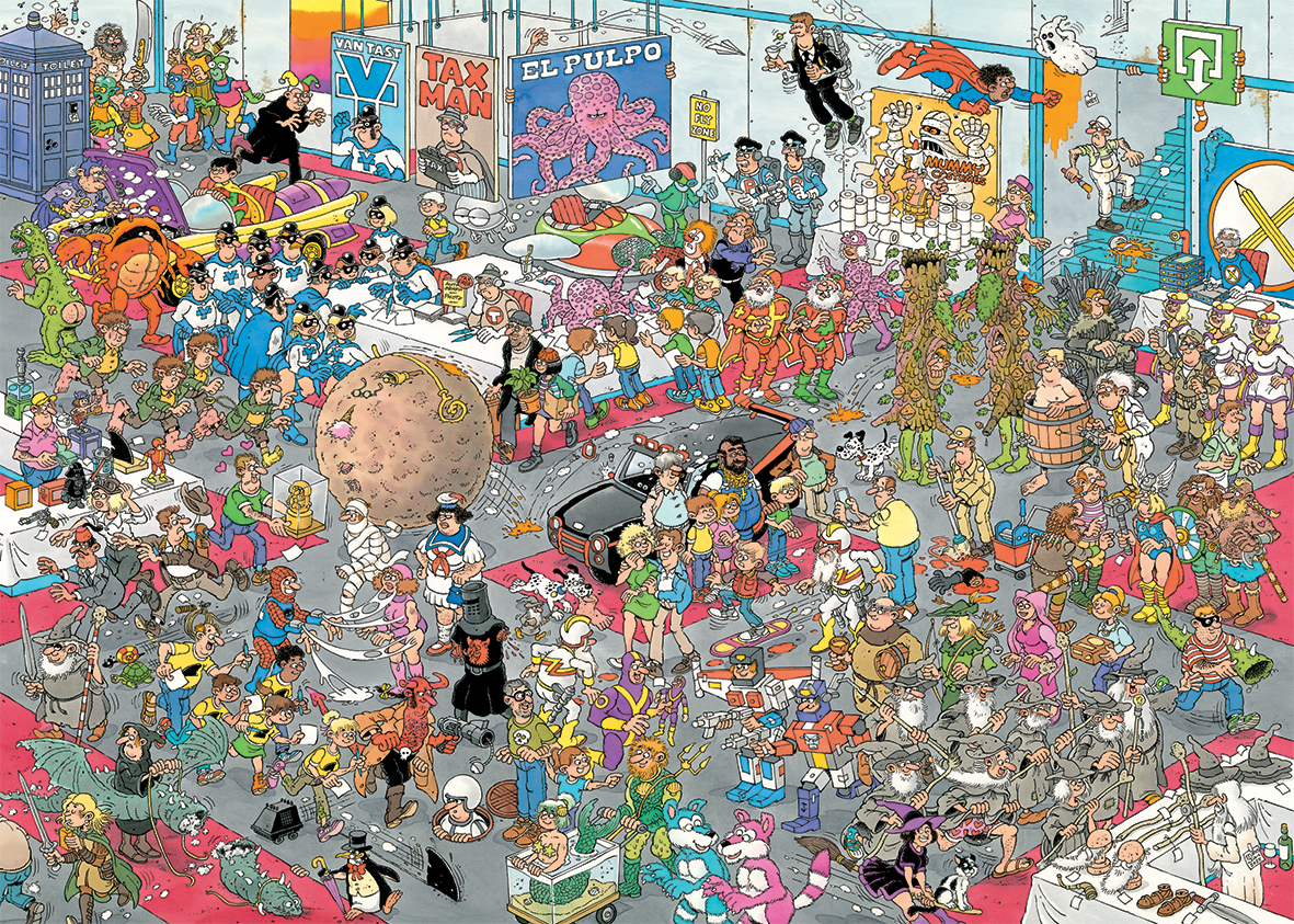 Jan van Haasteren är en populär och välkänd serietecknare som skapar mycket detaljrika, färgglada och humoristiska illustrationer.